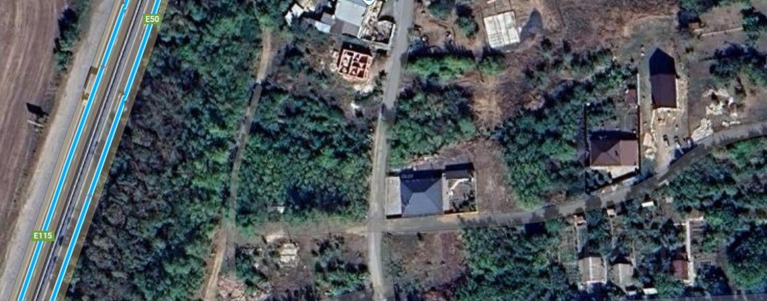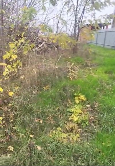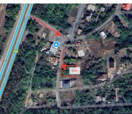 Размеры: фасад - 22м, тыльная сторона - 15м, правая боковая - 35м, левая - 30м. Участок двухуровневый, с уклоном. Коммуникации по меже.