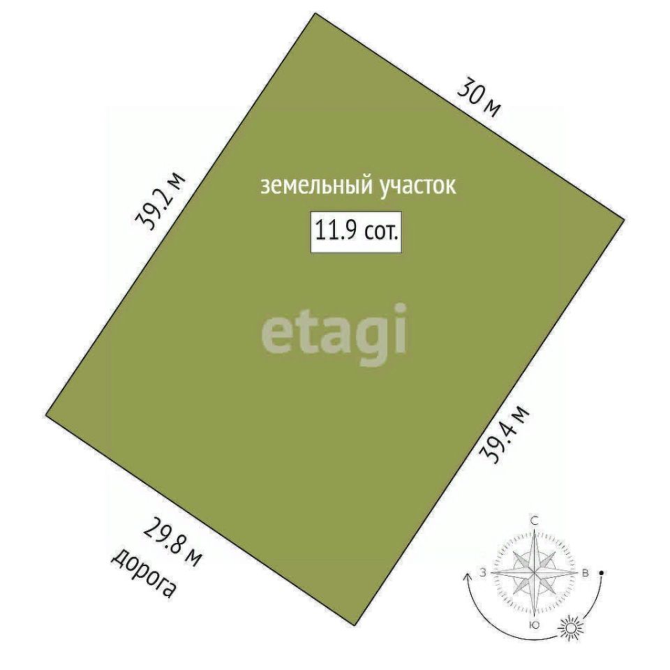 Общая площадь участка составляет 11,9 соток.