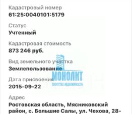 Кадастровый номер земельного участка 61:05:0040101:5179