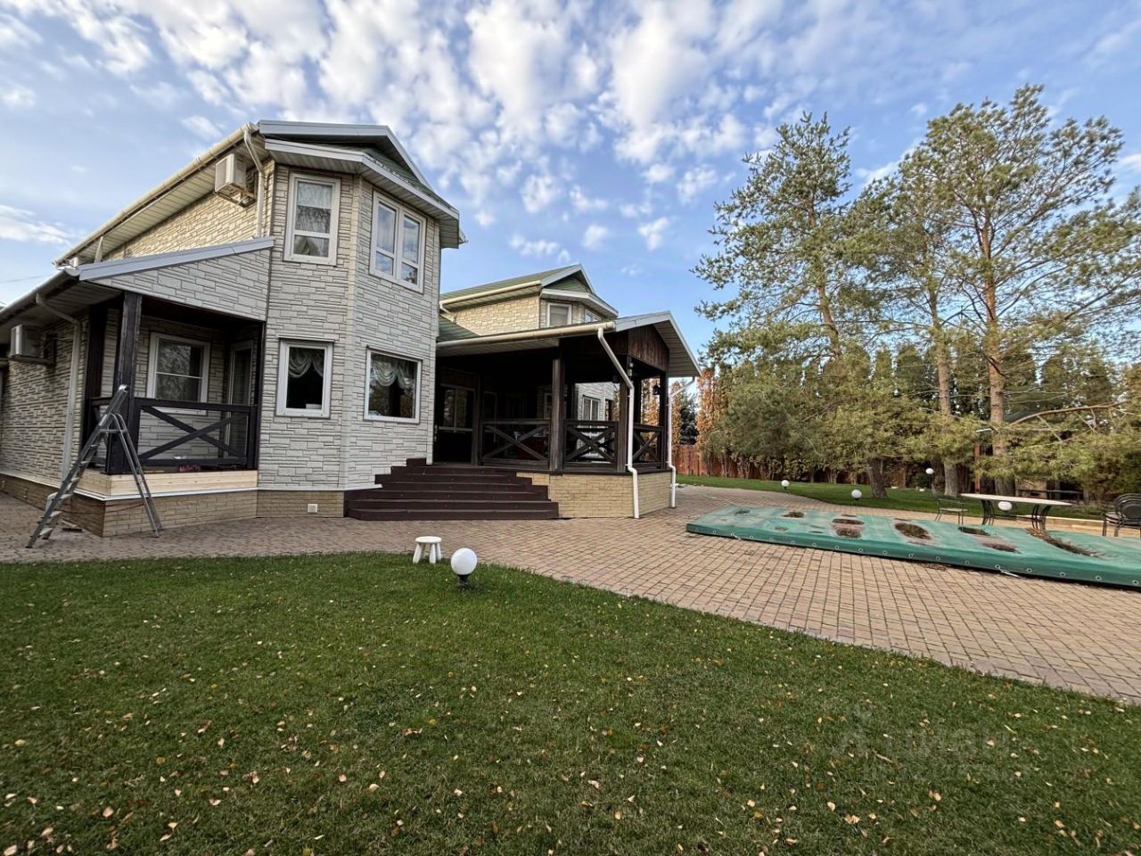 Имеется частный бассейн, просторная терраса , зона барбекю,летняя кухня и крытая беседка с видом на озеро.