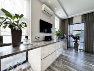 Грамотное зонирование кухни-гостиной эксклюзивный и комфортный интерьер в современном стиле по дизайн проекту.