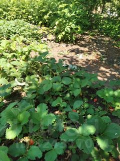 Имеется большой участок свободной земли квадратной формы, где растут фруктовые деревья и кустарники.