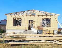 Площадь кирпичного дома составляет 120 квадратных метров. Дом на стадии строительства, полная готовность в июле.