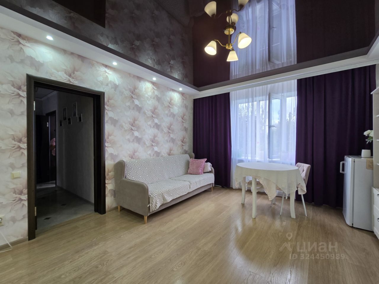 Во всех комнатах натяжные потолки, с точечным и центральным освещением.