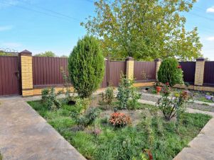 По периметру забор из металлопрофиля двойные секции.