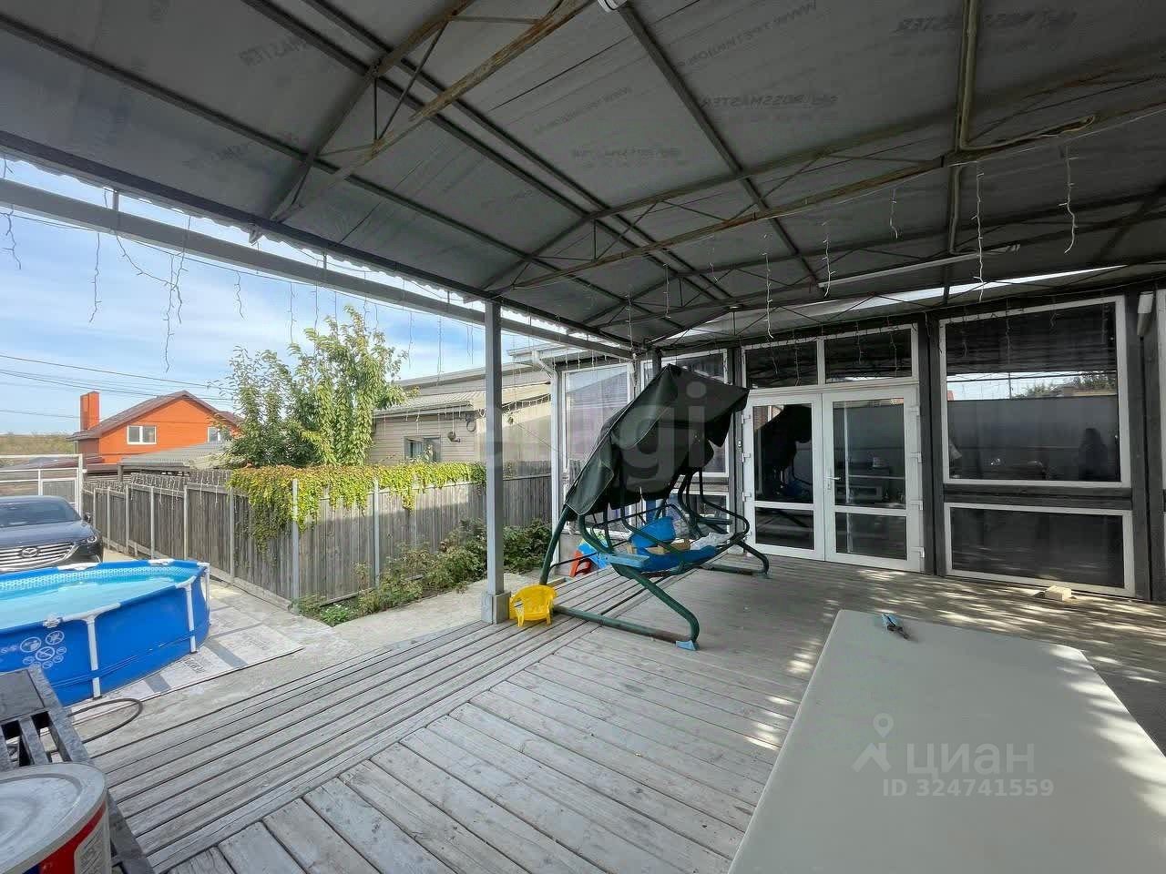 Придомовая территория благоустроенная, которая включает просторную террасу, что делает ее идеальным местом для приема гостей, а также участок с плодовыми деревьями и ягодными кустами. Подойдет для семьи с домашними питомцами, предусмотрен удобный вольер.
