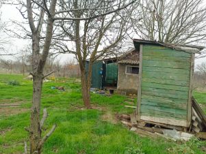 Забор рабица. Летняя вода ,электричество .Самодельная мансарда с затемнением. Для посиделок в тени. Имеется домик 10 к.в и сарай под хоз. инвентарь .Так же есть подвал бетонный. В домике сделана косметика поклеенв обои. И сделан натяжной потолок. Есть электроплита для приготовления еды на месте и большой вместительный холодильник. Есть уличный туалет. Несколько плодовых деревьев на участке. Та же есть летний душ с бочкой.