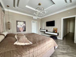 В доме продумано все до мелочей. Удобная планировка- кухня-столовая и просторная гостиная, выход на крытую террасу с мангальной зоной и выходом к бассейну. Четыре спальни, три санузла. Мастер-спальня со своей гардеробной и санузлом. Несколько кладовок, серверная, подвал, постирочная, помещение для хознужд. Ландшафтный дизайн, автополив, многоуровневое освещение, видеонаблюдение.