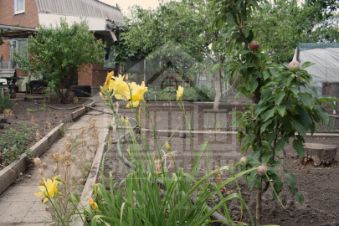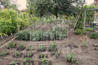 Широкий ухоженный участок с плодоносящими фруктовыми деревьями и большим виноградником. На участке есть небольшая беседка для расположения мангала и барбекю, уличные удобства и маленький домик для садового инвентаря.
