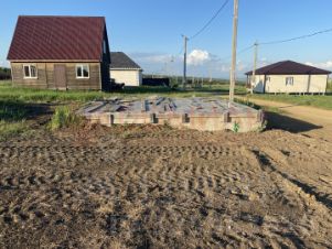 Арт. 104484307 Продается участок 8 соток. Коммуникации по меже. Жилая улица. На участке 3 готовых фундамента залитых плитой: под дом 14.4*11.8, баню 6*7, беседку 5*7, можно фундамент под баню и беседку переделать в дом, выведены все коммуникации. Фундамент из качественных, дорогостоящих материалов. Сливная яма из 3 ЖБ колец, вода, свет, и газ на участке. Есть готовый проект на дом.