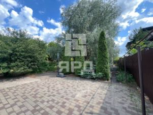 На территории есть зона барбекю, хозпостройки, достаточно места для деревьев и других зеленых насаждений, есть фруктовые и ягодные деревья, вольер для собаки.