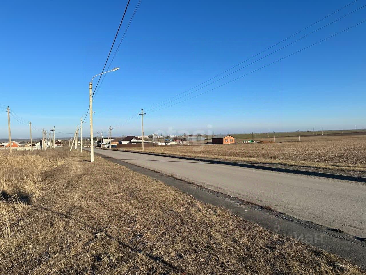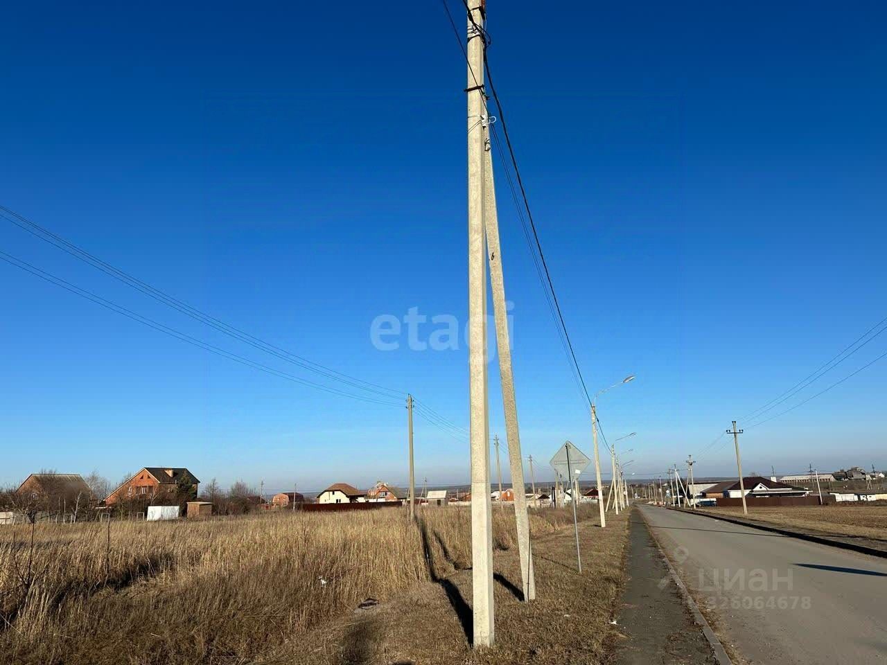 Рядом с участком стоят электрические столбы.