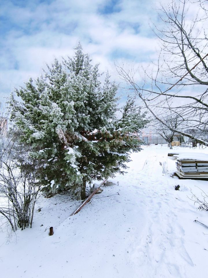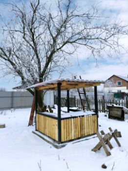 На участке бытовая постройка и мангал, плодовые и декоративные деревья.