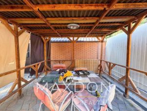 Благоустроенная территория участка, навес под 2 машины, беседка, плитка, ролл-ворота