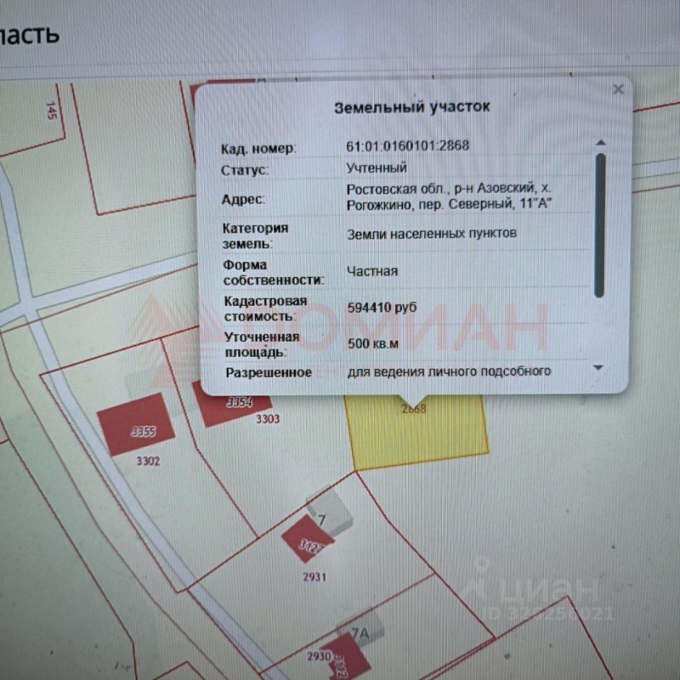 Кадастровый номер 61:01:0160101:2868