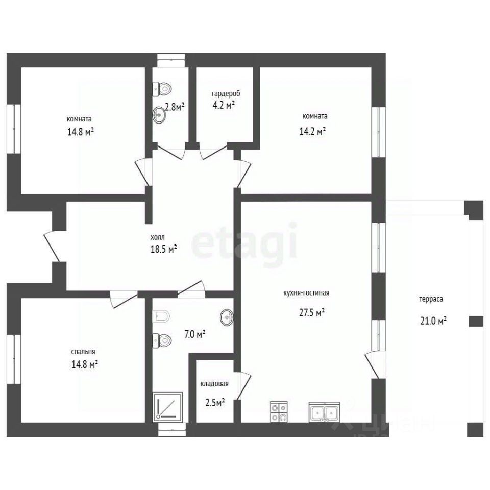 ПРОДАЕТСЯ одноэтажный кирпичный дом площадью 132 кв. м на участке 6 соток. Объект сдан в предчистовой отделке, что позволяет новым владельцам сразу приступить к финишным работам и реализовать собственные дизайнерские предпочтения. Выполнена качественная подготовка: штукатурка стен под маяк, механизированная стяжка пола с системой теплого пола, установлен газовый котел, радиаторы, металлопластиковые окна и выполнены все необходимые выводы под сантехнику. Планировка дома функциональна и продумана для комфортной жизни семьи: три изолированные спальни, два санузла, гардеробная и просторная кухня-гостиная площадью 27,5 кв. м. Из гостиной организован выход на террасу 21 кв. м. Участок и дом подключены к центральным коммуникациям — водоснабжению и газопроводу; для канализации оборудована накопительная емкость.