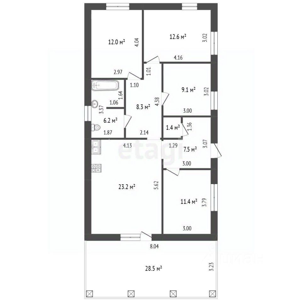 Планировка - отдельное достоинство дома: просторная кухня-гостиная с выходом на террасу, 4 отдельные комнаты (можно сделать и кабинет, гостевую), 2 санузла. Внутри выполнена предчистовая отделка (стяжка, штукатурка, шпаклевка), сделана разводка отопления и электрики, проложен теплый пол, осталось выбрать финальный дизайн!