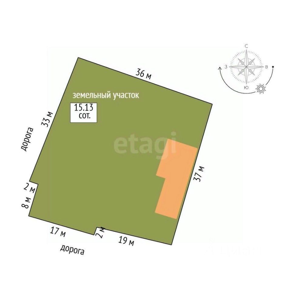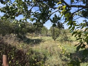 Участок огорожен забором. Во дворе имеются дополнительные хоз. постройки и летняя кухня. В саду растут фруктовые деревья.