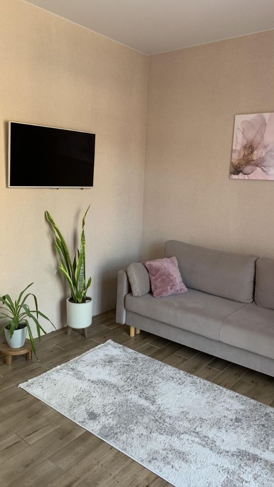 На первом этаже, выполнен ремонт. Просторная кухня 17м.кв ,гостиная 13м. кв. ,коридор 5 м.кв, санузел 4,5 м.кв, кладовая 3м.кв.