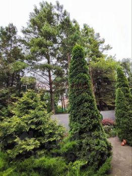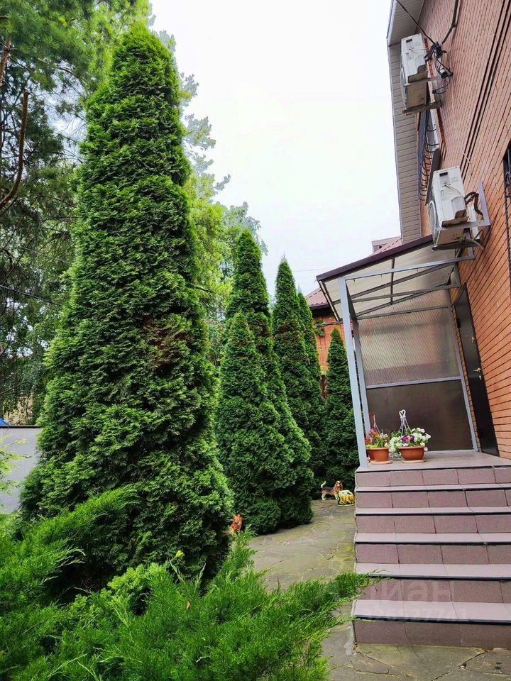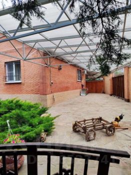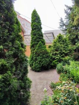 Во дворе природный камень, декоративные кустарники, цветы, деревья, освещение. Навес на 2 машины.