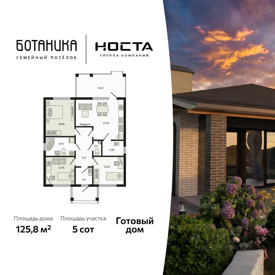 Прямая продажа от застройщика! Коттеджный посёлок комфорт-класса. Готовый дом 125,8 м² от ГК НОСТА в коттеджном посёлке Ботаника. Можно сразу делать ремонт. Подходит под семейную ипотеку. Ботаника — новый семейный посёлок для спокойной жизни среди зелени, рядом с природой и в удобной близости от города. Условия покупки: — Семейная ипотека от 5,5% — Сельская ипотека от 3% — Возможность использования материнского капитала — Господдержка от ГБУ РО "Агентство жилищных программ О посёлке Ботаника: — Закрытая территория 20 га — 247 домовладений в единой архитектурной концепции — Благоустройство, освещение и асфальтированные дороги — Парк площадью 1 га для прогулок с зонами активности и отдыха — Здание для коммерческой инфраструктуры — Окружение — лесополосы, водоёмы, луга О доме: — Общая площадь: 125,8 м² — Участок с забором и роллетными воротами — Бетонированное парковочное место, отмостка и дорожка — Просторная кухня-гостиная с панорамными окнами и выходом на террасу — Крытая терраса с видом на внутренний двор — Гостевой санузел и большая ванная комната с окном — Внутренний двор — идеально для сада или зоны барбекю — Предчистовая отделка, ровные стены — готов к ремонту Технические особенности: — Надёжная железобетонная конструкция — Отличная тепло- и шумоизоляция — Проведены все коммуникации: Электропроводка Водоснабжение и канализация Отопление (теплый пол + радиаторы в каждом помещении) Группа компаний НОСТА возводит жилые и коммерческие проекты на Юге России и Северном Кавказе, создавая новые стандарты жизни. Компания занимает 8 место по объёмам текущего строительства в Ростовской области. КП Ботаника - семейный посёлок в пригороде Ростова-на-Дону. Расположенный среди живописных холмов и прудов. В посёлке строится 247 домов, из них уже часть построена. Все дома в единой архитектурной концепции. Территория - закрытая, ограждённая и охраняемая, что гарантирует максимальную безопасность. К посёлку ведут хорошие дороги, обеспечивающие подъезд. Дома построены по каркасно-панельной технологии. Конструкции надёжны, долговечны и обладают высокой энергоэффективностью. Трёхслойные панели формируют фасад, обеспечивают защиту от внешней среды и сохраняют тепло. Однослойные панели применяются для внутренних стен и организации пространства. Панели состоят из стойкой адгезионной краски, фактурного фасада, бетона с армированием, утеплителя (минеральная вата), несущего железобетона с армирующей сеткой. Все панели имеют ровную поверхность для чистовой отделки, кабельные каналы с подразетниками для электроснабжения и закладные детали для создания несущего контура. Технология комфорта и надёжности обеспечивает: идеальное качество стен; точную геометрию проёмов; минимальную усадку дома; отличную звукоизоляцию; высокую теплоэффективность; длительный срок эксплуатации.