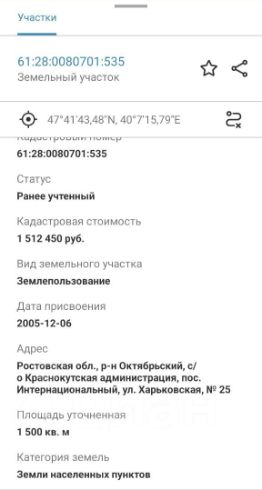 Кадастровый номер 61:28:0080701:535