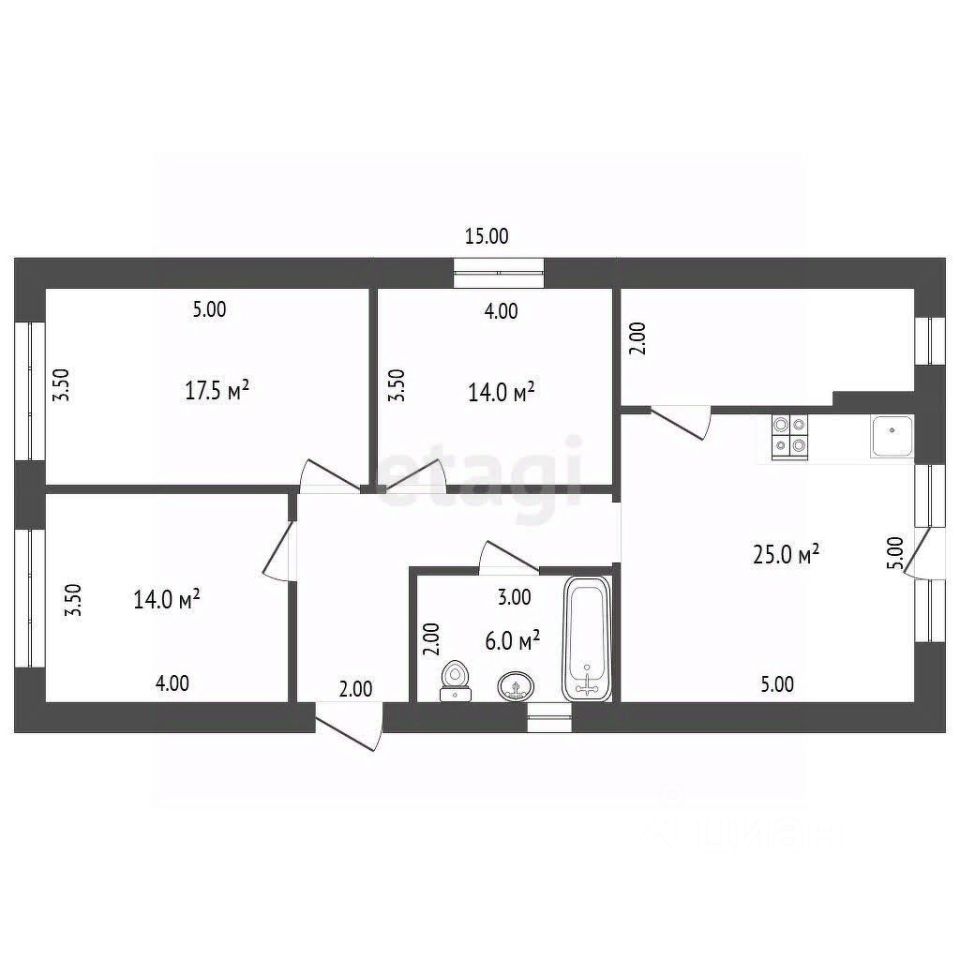 - 3 раздельные комнаты по 14 и 17,5 кв.м, комнаты не смежные, что очень комфортно для жизни
