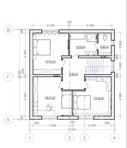 Предчистовая отделка . Первый этаж - теплый пол, на втором радиаторы отопления. Лестница бетонная.