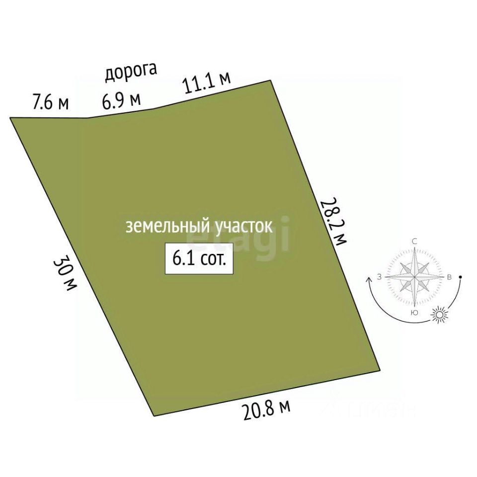 Продается земельный участок площадью 6,13 сотки.