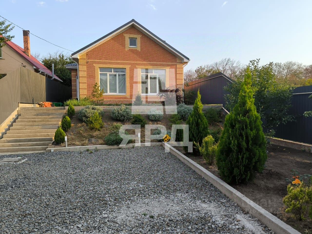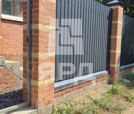 Двор отсыпан щебнем, по периметру установлен забор, автоматические ворота, калитка.