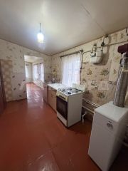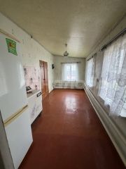 Кирпичный дом с 3 комнатами (одна небольшая, проходная) + кухня-прихожая и столовая.