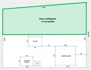 постройки расположены с одной стороны участка — есть возможность разделить землю для дальнейшей перепродажи или строительства ещё одного дома (схема разделения отображена на плане участка).