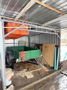 На территории есть баня, собственный гараж, летний душ, туалет, несколько веранд и хозяйственные постройки. Построен курятник и крольчатник. Выкопана яма под бассейн. Два заезда на 4-5 машин.