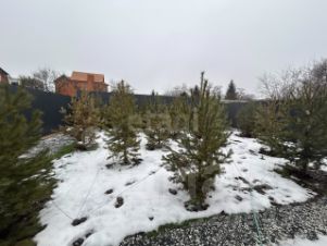 Придомовая территория полностью благоустроена, есть место для парковки автомобиля под крышей, высажено большое количество туй, елей и сосен, въезд оборудован автоматическими воротами.