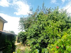 Участок на котором располагается дом ровной и правильной формы. На нем разбит плодоносящий сад из фруктовых деревьев и кустарников.