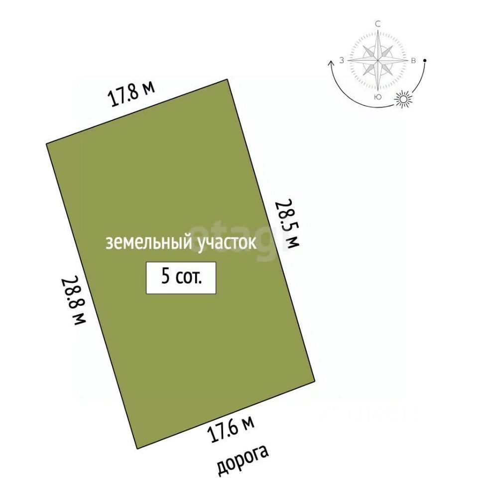 Земельный участок 5 соток имеет правильную форму с широким фасадом, что позволяет рационально использовать территорию. Предусмотрены места для парковки автомобилей, зона отдыха с возможностью установки беседки и ландшафтного дизайна. Все коммуникации централизованные: электричество, газовое отопление, канализация - септик , для воды необходима скважина. Дополнительные преимущества - выезд на магистраль за 5 минут.