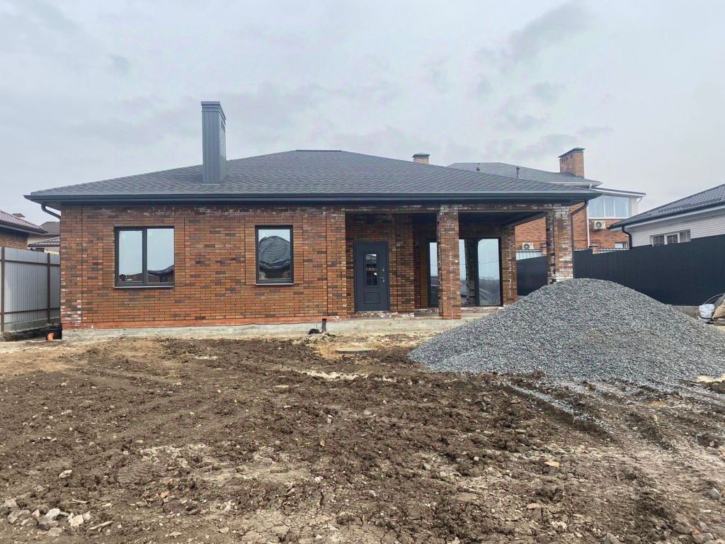 Дом возведен полностью из кирпича , большие металлопластиковые окна с внешней ламинацией, кровля- металлочерепица .