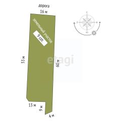 Участок площадью 9 соток имеет практически правильную форму прямоугольника с фасадом 16 метров. Ровный, без капитальных построек, есть две небольшие теплицы для хранения инвентаря, в дальнейшем под снос.
