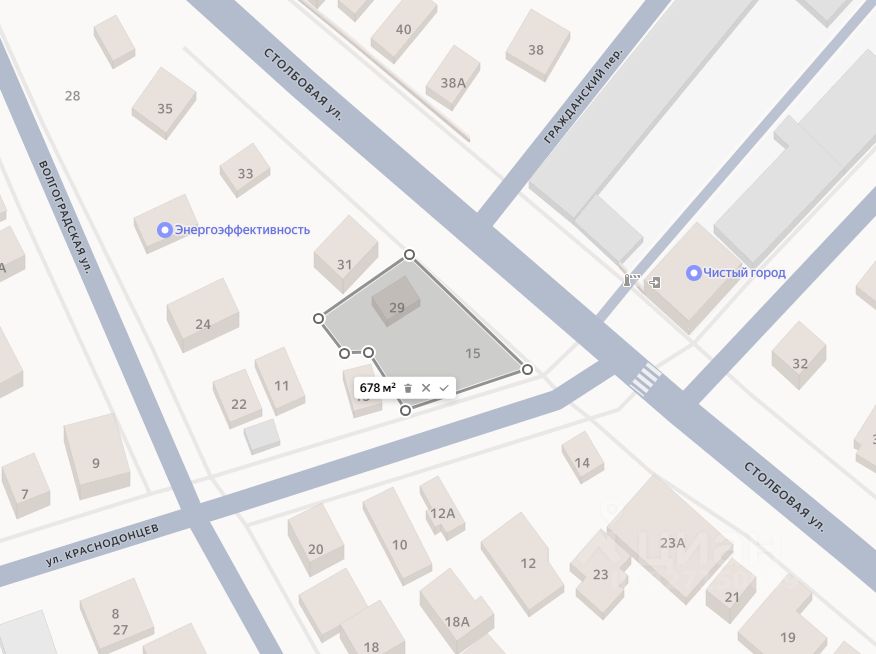 Два смежных участка в центре города суммарной площадью почти 7 соток, расположенные на оживленном перекрестке улиц Столбовая и Краснодонцев.