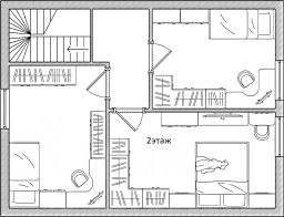 2-этаж: Лестница. Коридор. Спальня 2. Спальня 3. Спальня 4.