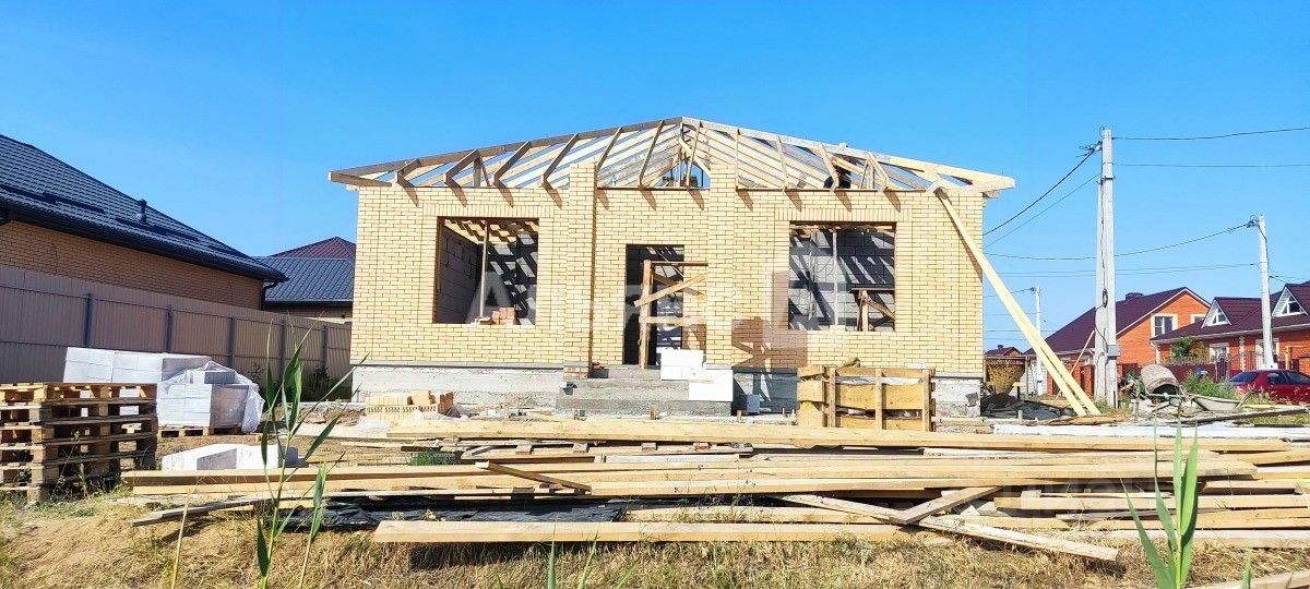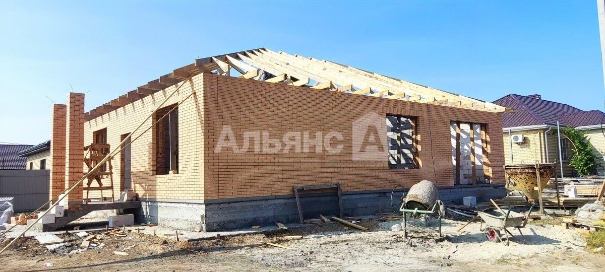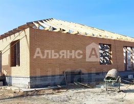 Площадь кирпичного дома составляет 120 квадратных метров. Дом на стадии строительства, полная готовность в июле.