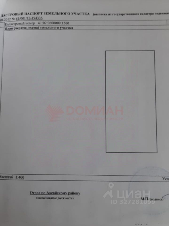 Арт. 98237085 Продам земельный участок 6 соток в Аксайском районе, хут. Александровка, рядом с кондитерской фабрикой "Мишкино". Кадастровый номер 61:02:0600009:1560.