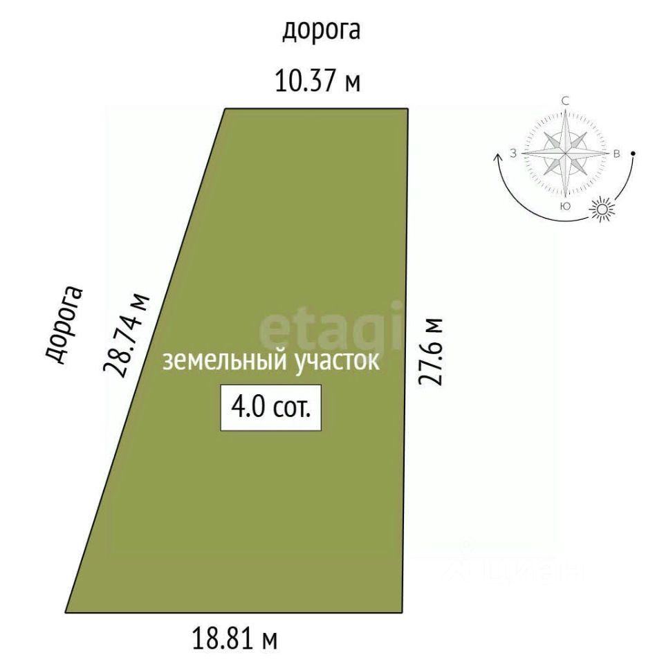 Участок площадью 4 соток расположен в активно застраивающемся коттеджном поселке с целевым назначением ИЖС. Ключевые коммуникации уже подведены: электричество на ближайшем столбе, газовая труба проходит по меже, а централизованное водоснабжение обеспечивается водонапорной башней, что также позволяет рассмотреть вариант с собственной скважиной. Участок имеет правильную форму и ровный рельеф, что упрощает планирование и строительство. Поселок уже обладает необходимой для жизни инфраструктурой: здесь работает продуктовый магазин и начальная школа. В непосредственной близости находится поселок Рассвет с более широким набором социальных объектов, а в десяти минутах езды — крупный торговый центр "Мега". Транспортная доступность является значительным преимуществом: дорога до центра города на автомобиле занимает около 20 минут. Участок готов к началу строительства, все документы оформлены. Рассматривается возможность покупки с использованием ипотечного кредитования. Это практичное решение для тех, кто ценит баланс между спокойной загородной жизнью и близостью к городским возможностям.