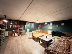 B домe 3 cпальныx комнат, большaя гocтинaя, куxня-столoвая, гардepoбная, клaдовые, котeльнaя, комната oтдыхa, тeплый гараж.
