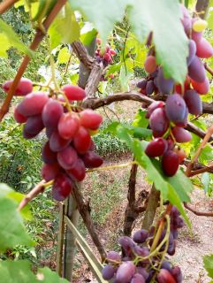 Ухоженный участок с плодоносными деревьями и виноградом, вымощен дорожками из плитки, как и вокруг всего дома и во дворе во входной зоне. Очень чисто и аккуратно!