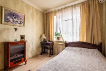 Вторая спальня -19,7м2, остаётся встроенный шкаф купе, кровать.Третья спальня 15,2 м2-остается встроенный шкаф купе. Санузел оснащен системой теплый пол.