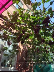 На участке ухоженный сад- малина, абрикоса,9 сортов элитного винограда,розарий.