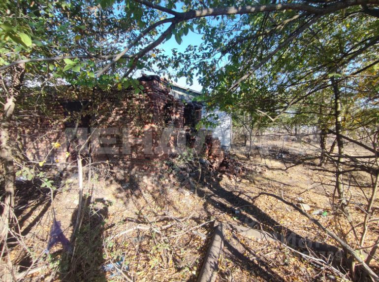 Участок прямоугольный, заросший, есть постройка под снос.
