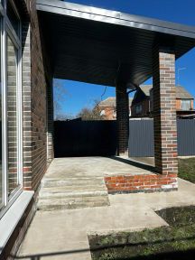 Перед домом парковка на несколько автомобилей, большая придомовая территория.