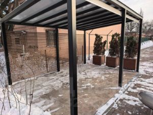 Двор покрыт тротуарной плиткой с гранитным напылением. Имеется беседка, зона для приготовления пищи.
